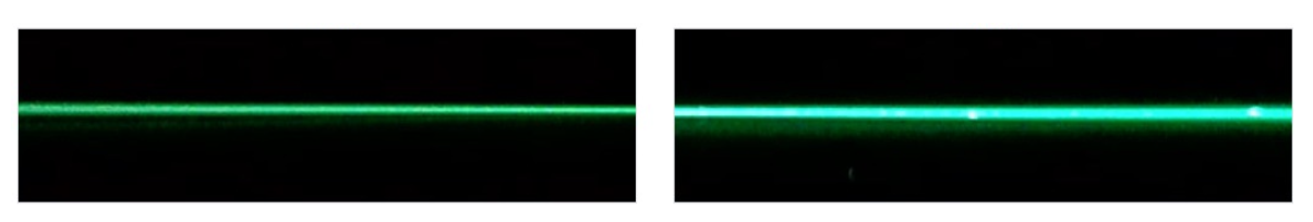 測定対象の水にレーザを照射しすると、水中に含まれるウルトラファインバブルなどの粒子はレーザ散乱光を発します。UFBチェッカーは、その散乱光の画像を二値化処理した上で、ドット値として数値化します。計測対象の水の中にある粒子の個数濃度によって、レーザ散乱光の強度が変化するので、これを画像センサーで捉えて処理をします。同時に2つの水試料を計測することで、その差分を確認します。